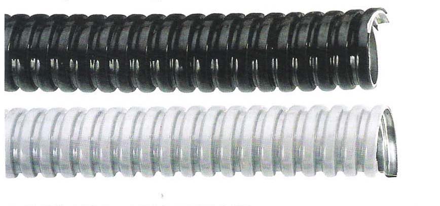 JMF-SJSH不锈钢包塑金属软管,内层软管为兴化市佳敏金属软管厂第一轧钢厂生产的不锈钢钢带,光亮平滑处理,无毛刺;沿着管壁芯的凹凸面贴紧地包覆的外层为兴化市佳敏金属软管厂东方塑料造粒厂生产的阻燃高级PVC电缆料粒子,吸附性强,阻燃防火,光亮鲜艳。其主要为自动化仪表信号线、电缆电线提供保护外套,亦作为电子设备线路保护管,电器线路的安全防护管。为电力信号线,控制线,光缆线路等线路外提供绝缘保护,无生锈困扰,并可起到美观的作用。