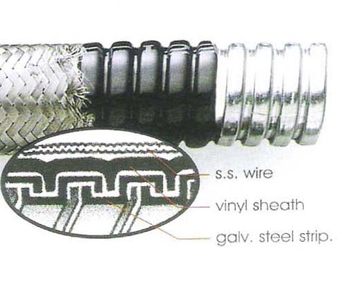 不锈钢编织软管结构及特性: 内管为防水防静电PVC披覆镀锌金属软管或不锈钢软管内披覆PVC:提供良好的机械保护及防水功能; 外层不...